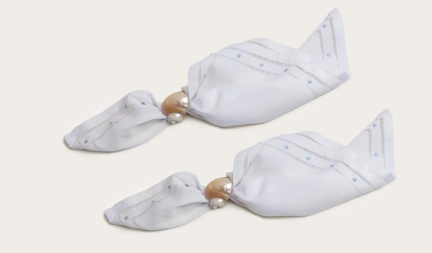 And how pretty are these mother of pearl swirl shell napkin rings!
