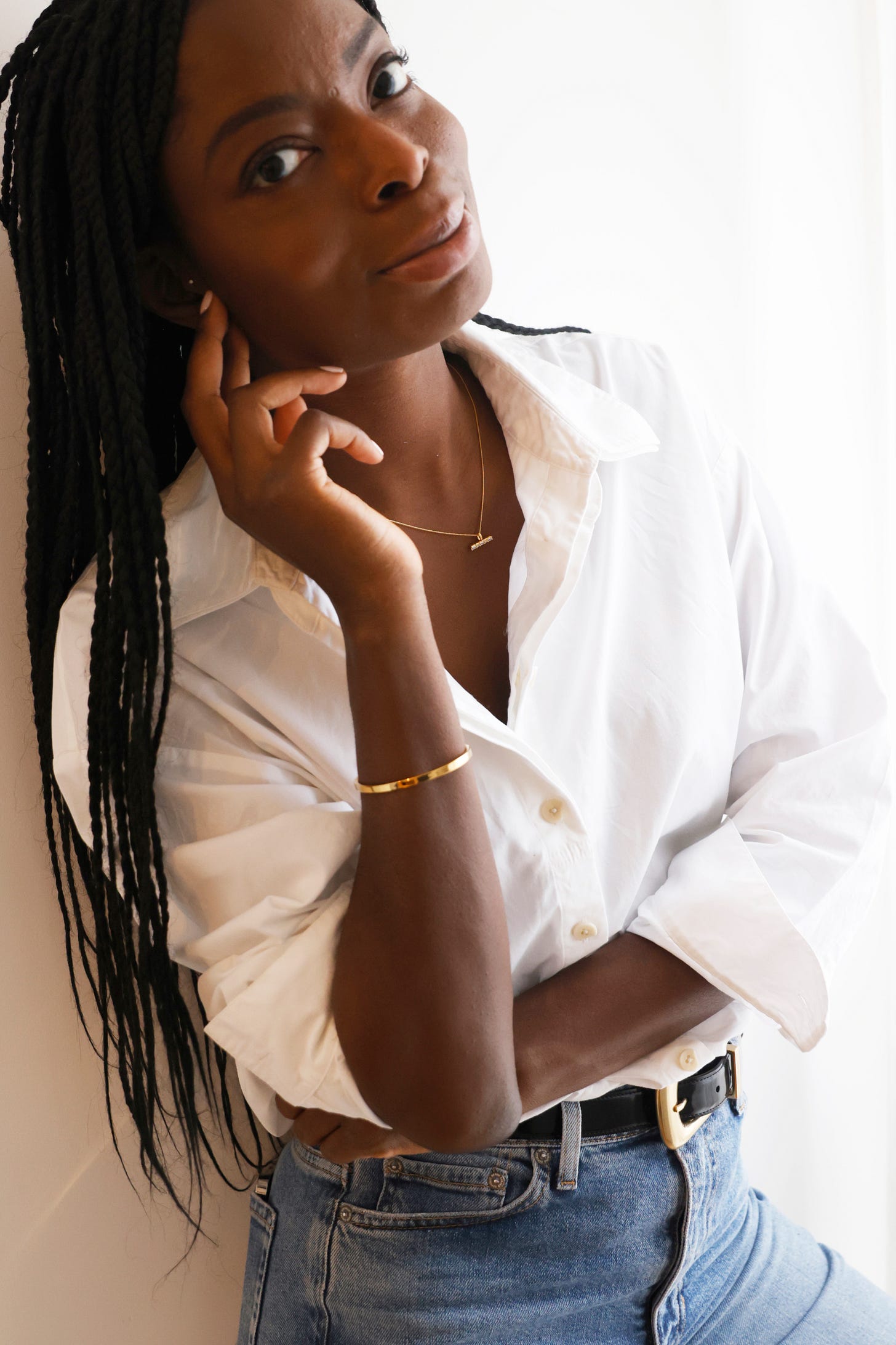 Take this gold bangle for example - for daytime I usually keep my jewellery super simple (I’m talking one, or max two, pieces of jewellery), and this was one of those occasions where the jewellery dictated the rest of the outfit... I felt like the bangle was just crying out for a simple backdrop so it could really shine, y’know?