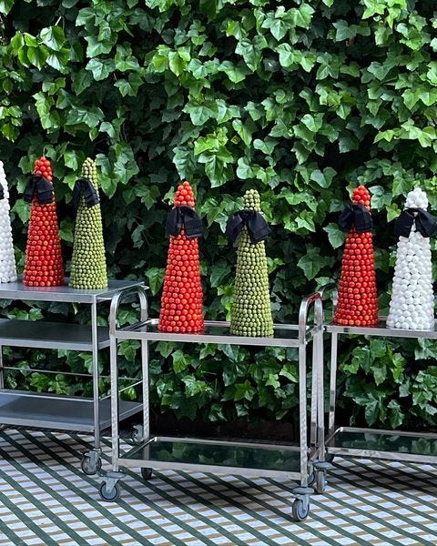 In a way, that is still basically the essence of what she does - catering for events - if you can describe creating increasingly ambitious food installations for everyone from Hermès to Dries Van Noten as ‘catering’. By applying her impeccable taste and idiosyncratic eye to the world of food, she’s elevated it to an art form - examples below.
