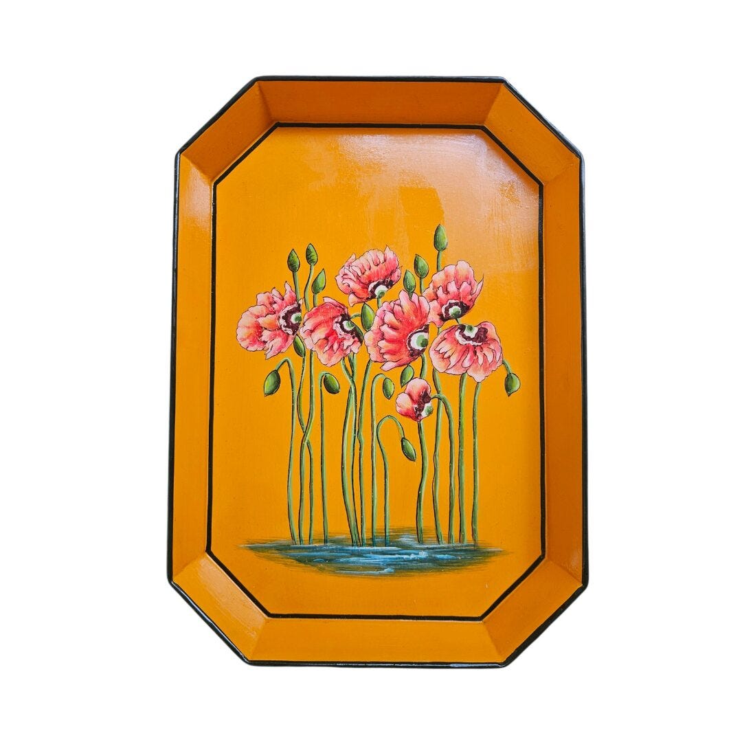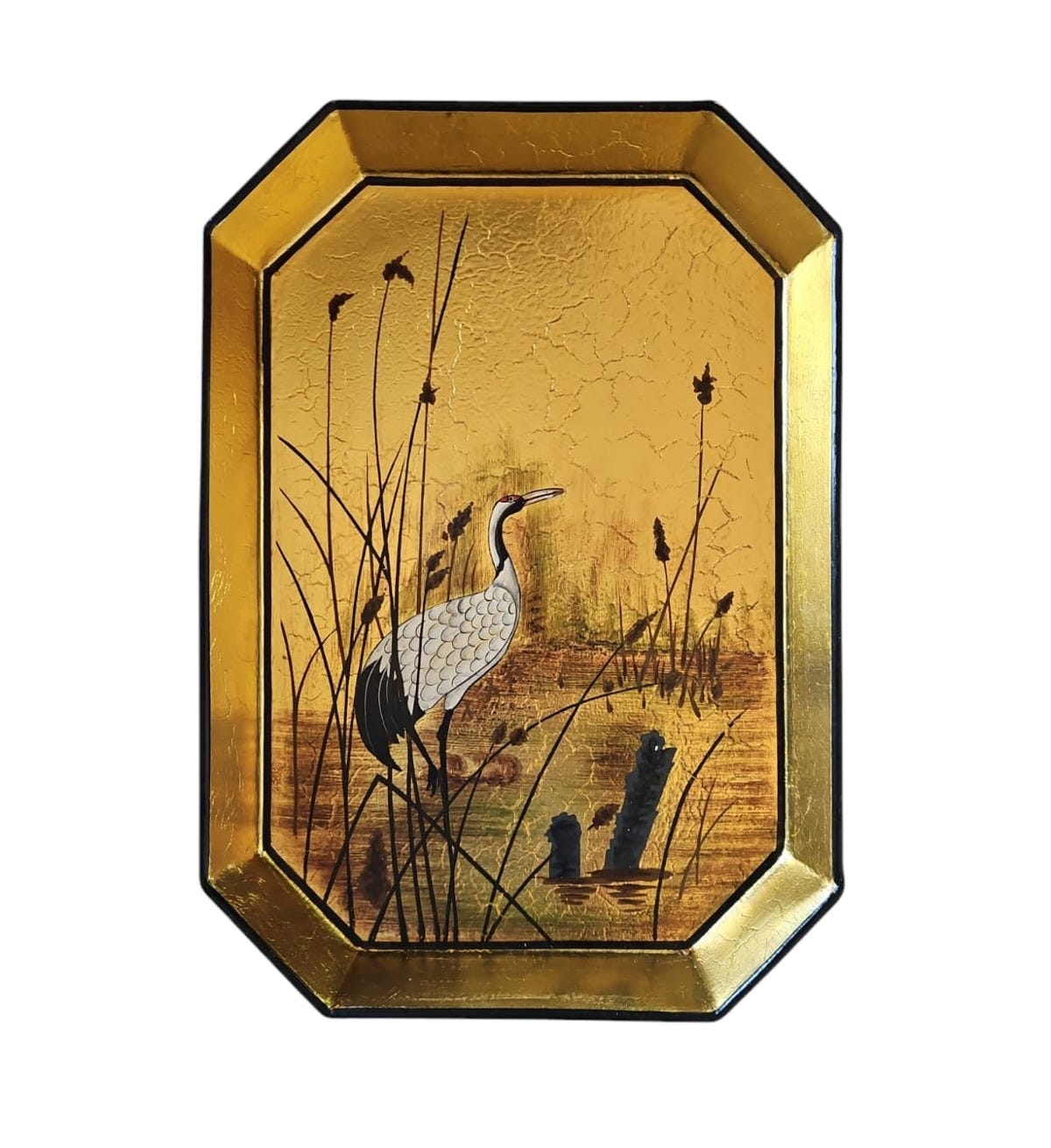 Gold coral lacquer; gold leaf herons; black florals and orange poppies - something for everyone!