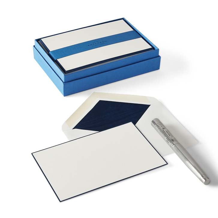 x10 bordered correspondence cards with matching (tissue-lined!) envelopes, available in five different colourways - I went for navy.