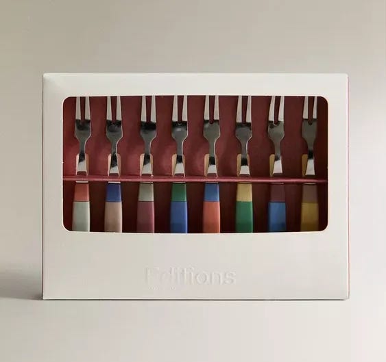 Zara Home has made the EXCELLENT decision to bring back these colourful aperitif forks (which I shared in last year’s end of year newsletter but they sold out in practically no time). Snooze ya lose!